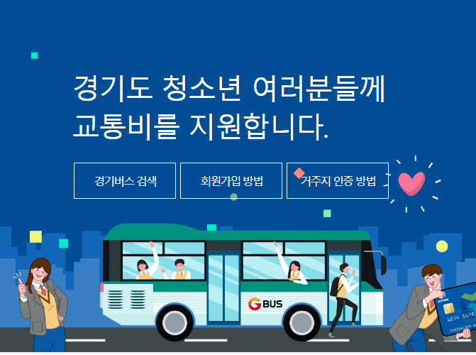 교통비 지원은 경기도 청소년 교통비 지원 포털 (https://www.gbuspb.kr/)에서 온라인으로 가능합니다. 회원가입부터 신청방법까지 아래 내용을 참고해주세요!