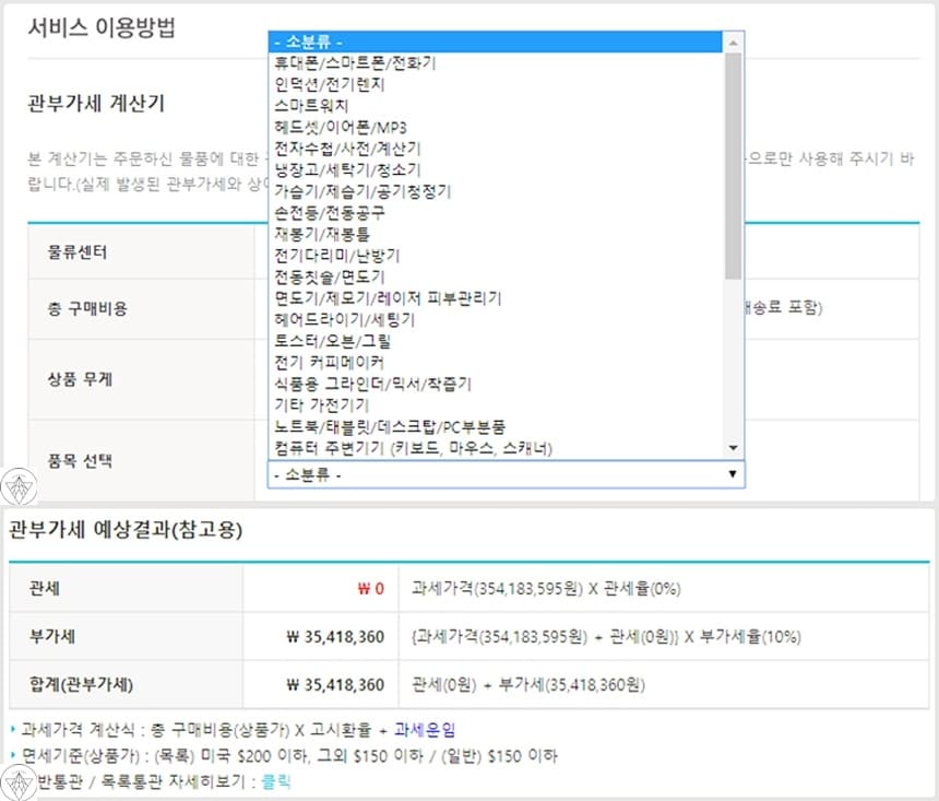 관부가세 계산기 사용법