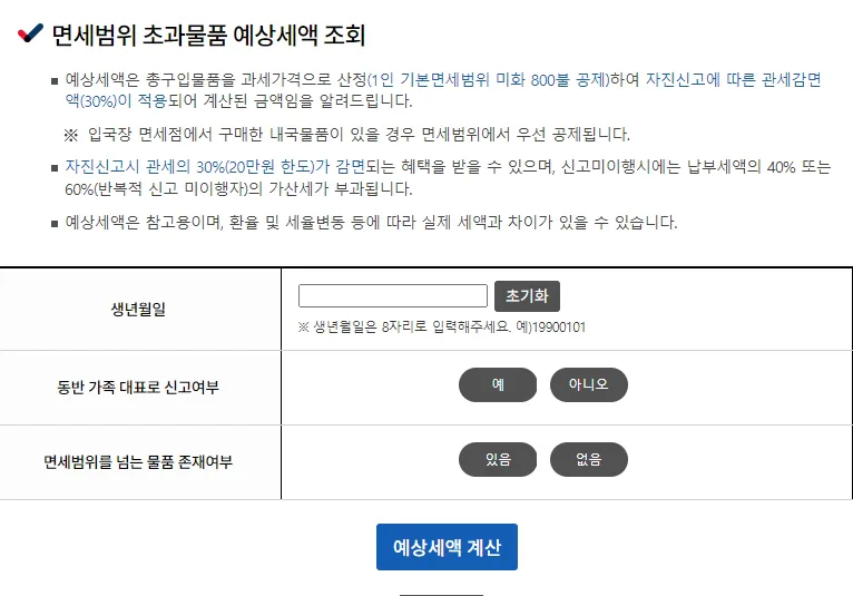 - 관세청 공식 사이트 : 관세청에서는 정확한 세액을 조회할 수 있는 시스템을 제공합니다.