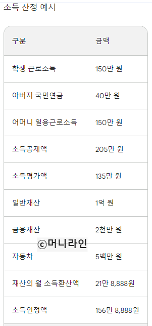 ① 학생 근로소득 월급 150만 원, 대출 3천만 원