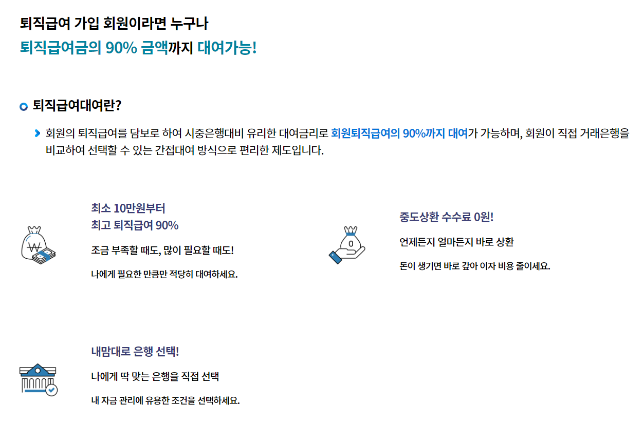 퇴직금 담보대출 조건은 군인 공제회 회원이면서 퇴직급여 가입 회원인 경우에만 진행이 가능합니다.