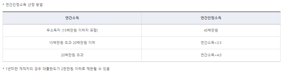 ③ 채권양도협약기관 반환채권양도 : 연간인정소득 – 본인 부채금액의 25% – 기 기금전세자금대출잔액