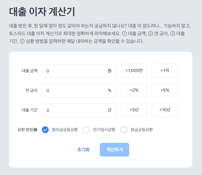 1) 토스에서는 사용하기 쉬운 대출 이자 계산기를 제공하고 있습니다.