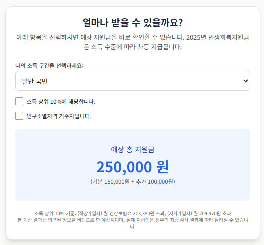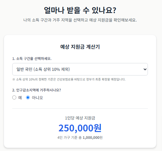 | 민생회복지원금 계산기 | ▶ 민생회복지원금 예상 지급금액 계산기 |