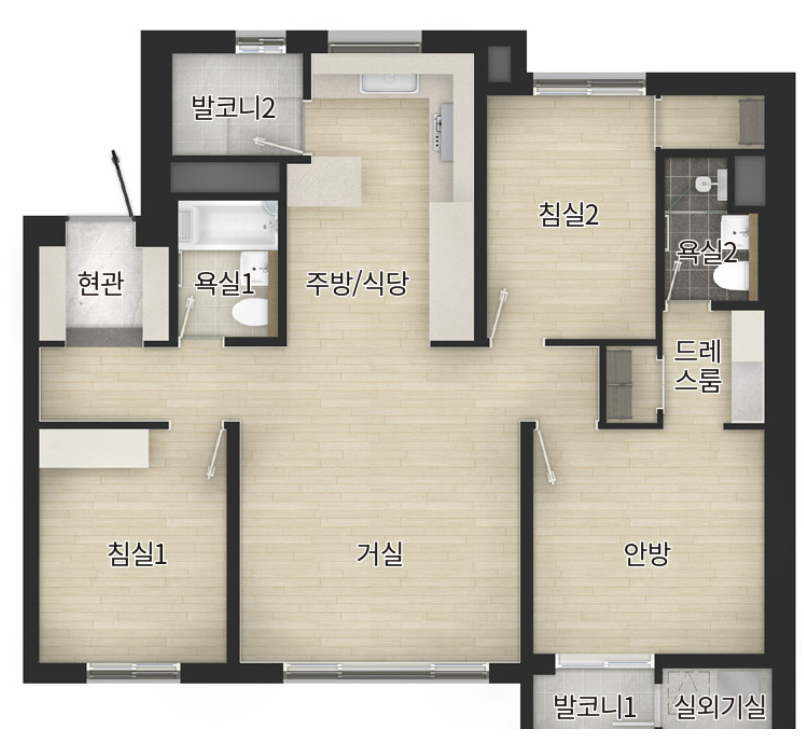 드파인 광안은 59A, 78A, 78B, 84A, 84B 등 다양한 평형을 제공하며, 특히 84A 타입은 4베이 판상형 구조로 채광과 통풍이 우수하여 많은 분들이 선호하는 구조입니다. 자세한 평면 정보는 아래 이미지를 참고하세요.