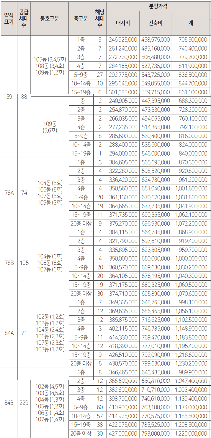 드파인 광안의 분양가는 전용 59㎡ 8억 대, 전용 74㎡ 10억 대, 전용 84㎡ 12억 대로 책정되었습니다. 인근 단지 시세와 비교했을 때 합리적인 수준이며, 특히 광안대교 뷰를 감안하면 더욱 매력적인 분양가입니다.