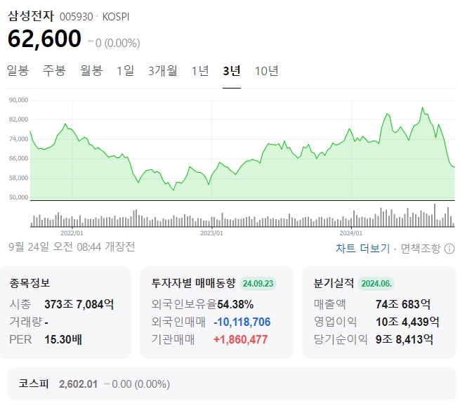 [4] Chosunbiz - 불과 한 달 전 '왕의 귀환'이랬는데… 또 바뀐 증권가 삼성전자 ... (https://biz.chosun.com/stock/analysis-prospect/2024/09/10/D7XJ57D3DNHQZGY73XYDU5SYBY/)