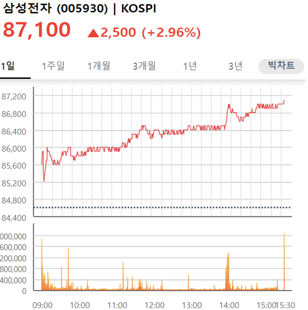 2024년 8월 6일 기준으로 삼성전자의 주가는 87,100원이었으며, 이는 전일 대비 2.96% 상승한 수치입니다. 이러한 상승세는 최근 발표된 실적과 관련이 깊습니다.