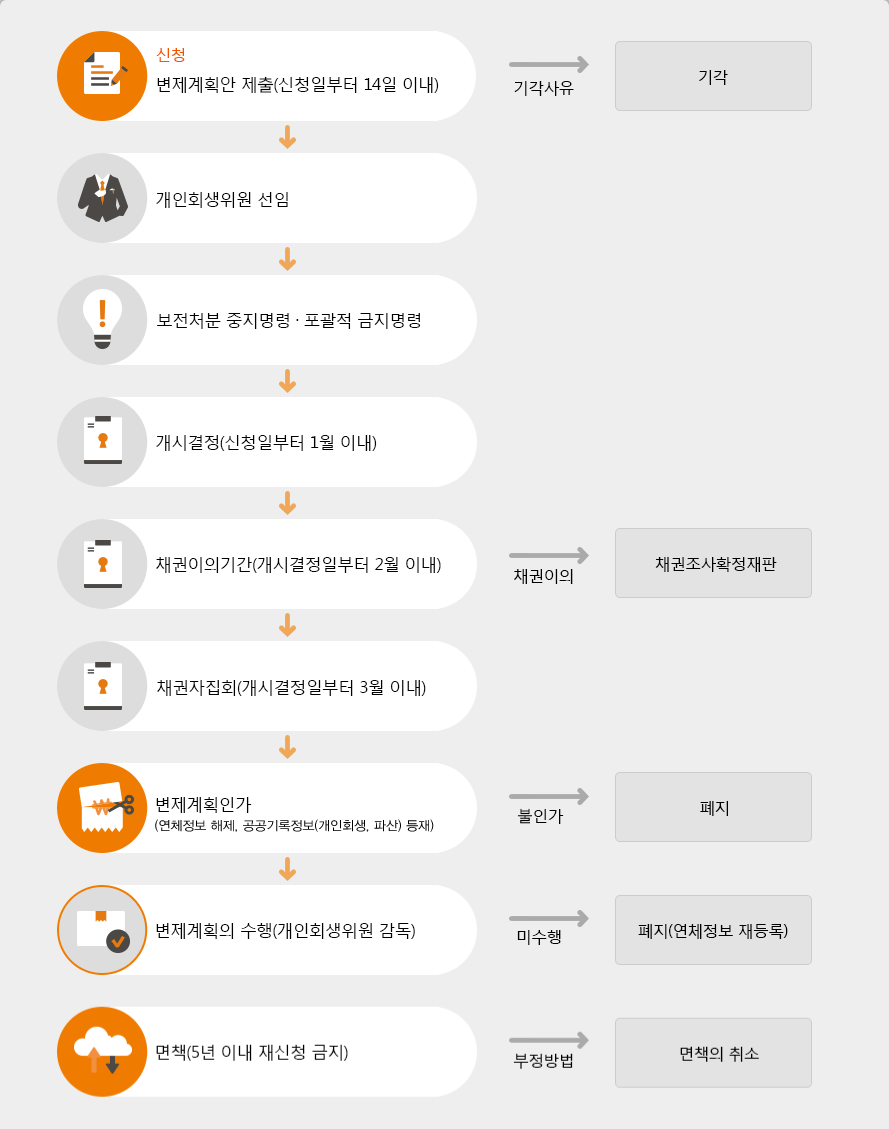 - 개인회생 또는 파산 면책 신청을 결정합니다.