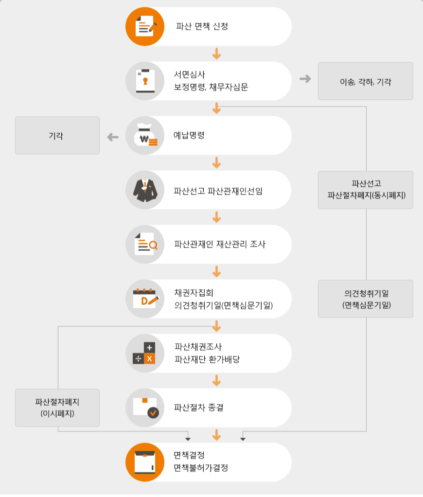 - 개인회생 또는 파산 면책 신청을 결정합니다.