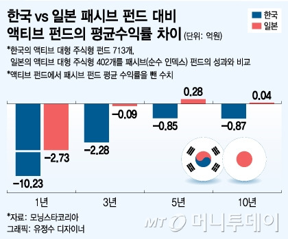 국내와 일본의 액티브 펀드 성과를 비교한 결과,