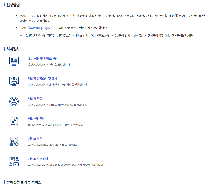현재 생계급여 또는 의료급여 수급자는 별도로 주거급여를 신청할 필요가 없으며, 신규로 주거급여를 받으실 분만 신청하여 주시기 바랍니다.