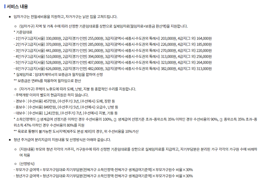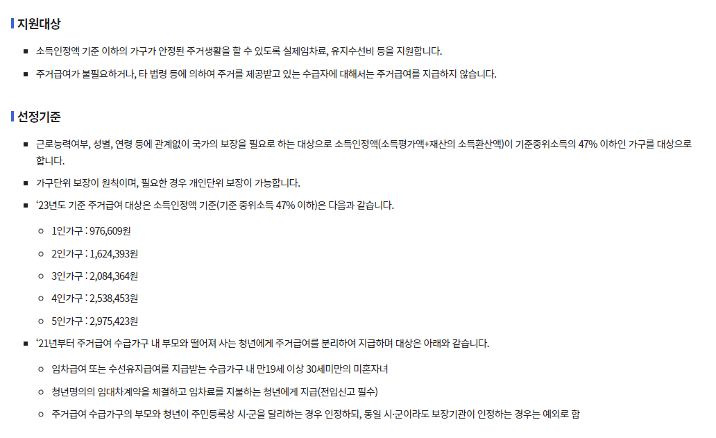 2024년 주거급여 신청자격 지원금액 총정리