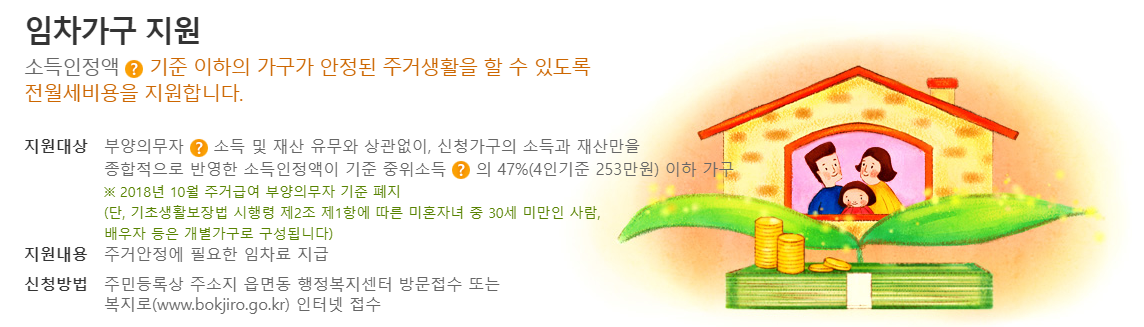 주거급여는 읍면동 주민센터 또는 복지로 홈페이지(바로가기)를 통해 온라인으로 신청할 수 있습니다.