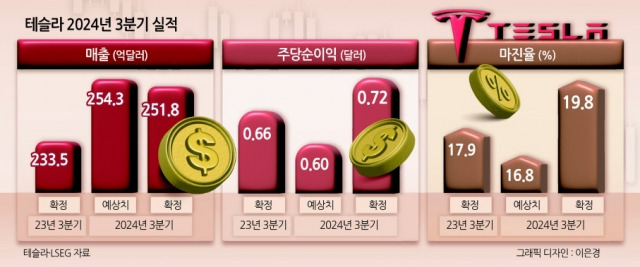 [2] 네이버 프리미엄콘텐츠 - 테슬라(TESLA) 24년 3분기 실적 종합 분석! 내년은 테슬라의 ... (https://contents.premium.naver.com/finfarmer00/finfarmer/contents/241024062715299am)