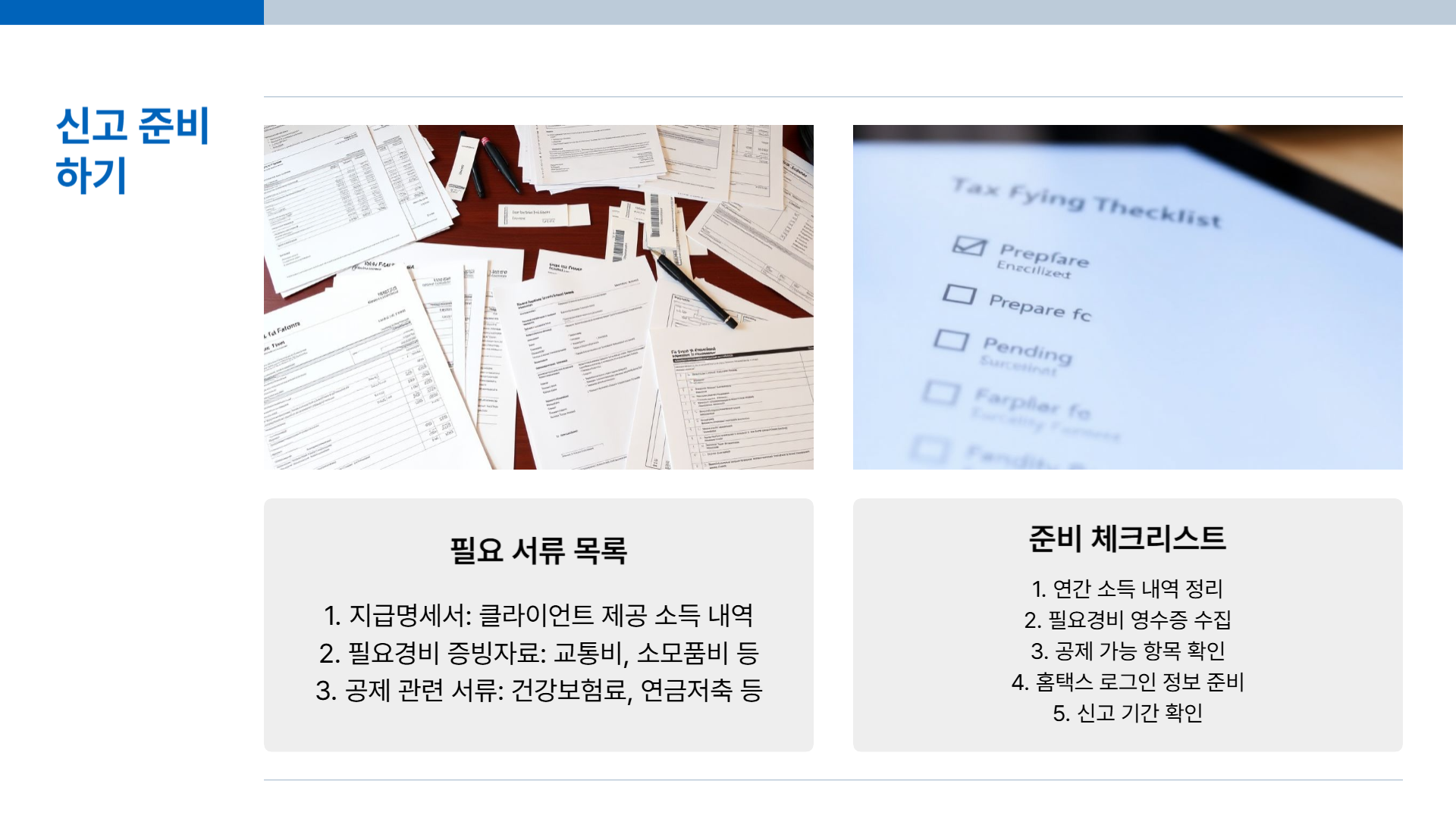 - 종합소득세 신고 준비물 체크리스트 제공