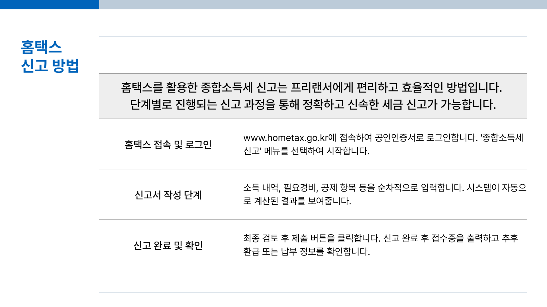 홈택스를 이용한 신고는 간단합니다: