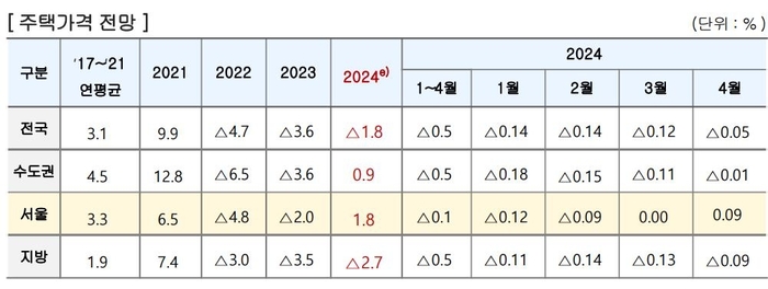 이 표를 보면, 2024년까지의 시세 변화가 어떻게 이루어질지에 대한 예측이 나와 있어요. 특히, 서울과 지방의 차이를 주목해야 합니다.