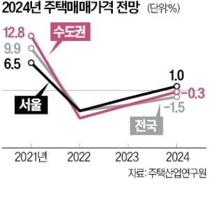 "공급부족에 2025년부터 주택시장 과열될 듯", 주산연, 주택시장 전망 내년 하반기 집값 반등 가능성 금리 인하 기대감에 낙폭 줄어 아파트 입주물량은 감소 전국 전세가격 2.7% 올라