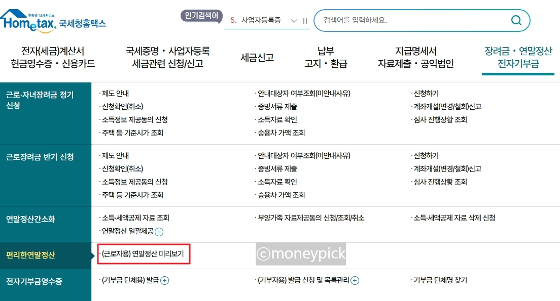 연말정산 미리보기 메뉴는