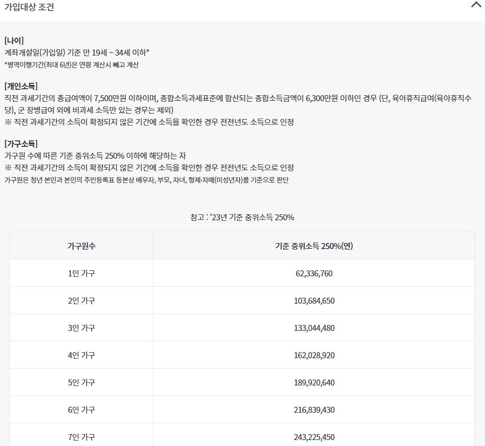 청년도약계좌의 자격 요건도 변경되었어요. 특히, 기준 중위소득 250% 이내의 가구가 주 대상이죠.