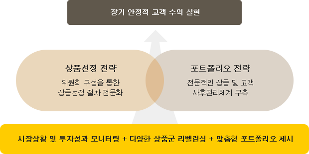 KB국민은행은 고객의 자산을 효과적으로 관리하기 위해 두 가지 주요 전략을 채택하고 있습니다. 첫째, 상품선정 전략입니다. 이는 체계적인 상품 선정 과정을 통해 고객에게 최적의 상품을 제공하는 것입니다. 둘째, 포트폴리오 전략입니다. 전문적인 상품 제공과 고객 관리 시스템을 통해 고객의 자산을 안정적으로 관리합니다.
